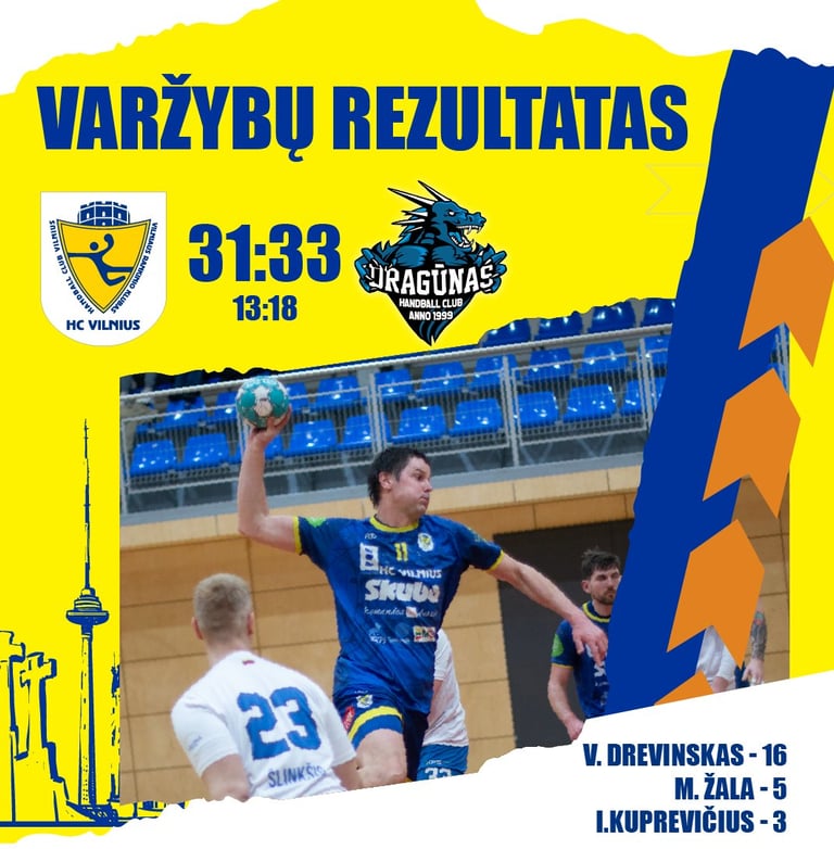 Pirmosios LRF Taurės ketvirtfinalio rungtynės su „Dragūno“ komanda baigėsi varžovų persvara. Rungtynių rezultatas 34:28.