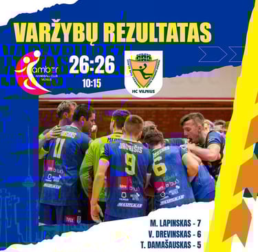 Šeštadienį sporto mokykloje "Tauras" susitikome su turnyrinės lentelės kaimynais HC "Amber". Varžybas pradėjome įgydami net 7 įvarčių pranašumą (1:8). "Amber" pavyko sumažinti atsilikimą, tačiau antrojo kėlinio viduryje vėl pirmavome 14:21. Rungtynių pabaigoje varžovai prisivijo ir per paskutines rungtynių sekundes išlygino rezultatą 26:26 (10:15).