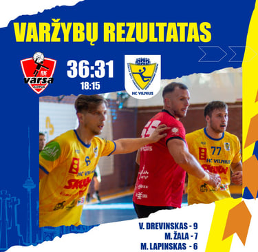 Įvarčius pelnė: M. Lapinskas - 6, V. Drevinskas, M. Žala - po 5, T. Markiavičius - 4, I. Javaišis ir R. Leščinskas - po 2, E. Bražas ir Dž. Saliamoris - po 1.