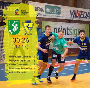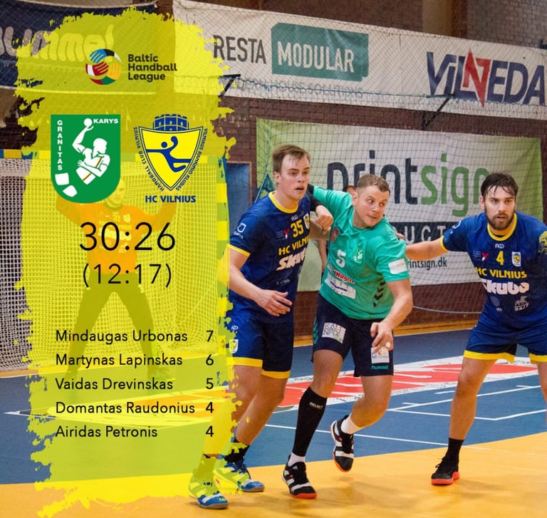 HC Vilnius – Urbonas 7, Lapinskas 6, Drevinskas 5.