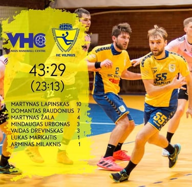 Paskutinį kartą „VHC Šviesa Vilnius“ ir „HC Vilnius“ kovojo kovo 31 d., Žaidimas buvo įtemptas ir intriguojantis, „VHC Šviesa“ laimėjo tik vienu tašku 35:34. Abi komandos ruošėsi labai įdomioms ir sunkioms rungtynėms. Šį kartą „VHC Šviesa Vilnius“ įgijo gerą persvarą jau pirmoje žaidimo pusėje (23:13). Antrąsias 30 žaidimo minučių „VHC Šviesa“ sugebėjo padidinti persvarą – 43:29. Geriausias komandos „HC Vilnius“ žaidėjas buvo Martynas Lapinskas su 10 įvarčių (10/10), taip pat įmušė visus šešis 7 m baudinius. Domantas Raudonius pelnė septynis, bei Martynas Žala keturis įvarčius.