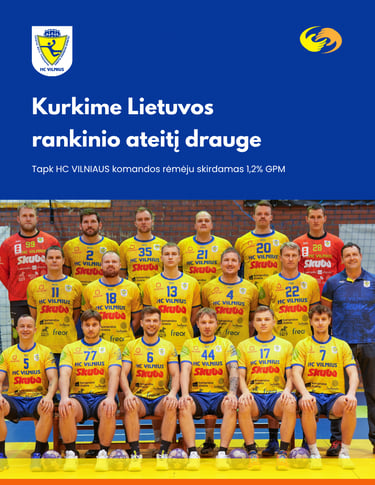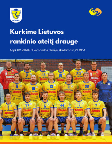 Kviečiame skirti 1,2 proc. gyventojų pajamų mokesčio VšĮ „Vilniaus rankinio klubas“ ir būti Vilniaus vyrų rankinio komandos HC „Vilnius“ dalimi.
